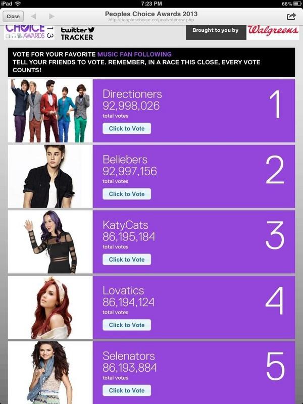 Does anyone else feel likes the #PCAs are rigged for whoever showed up? No way fans voted The Wanted over 1D and Katy Perry over Biebs.